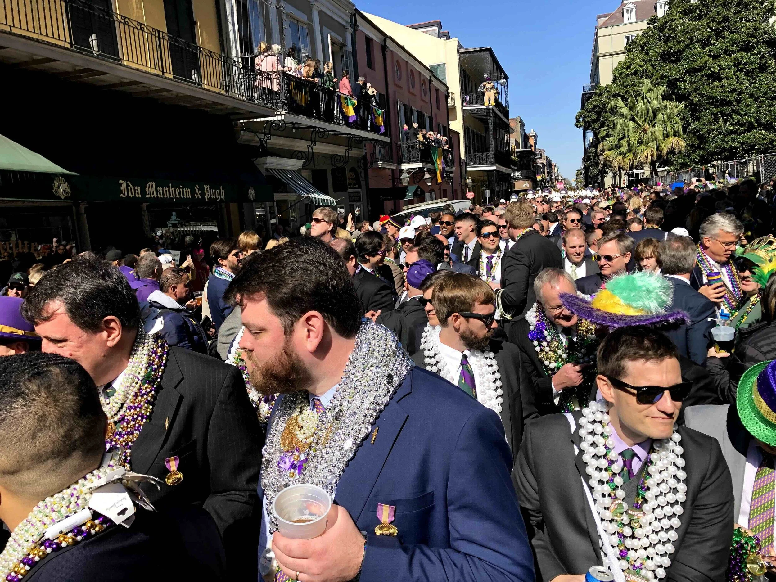 After long, celebratory lunches on Hermes Friday, the French Quarter buzzes with activity as tourists and locals flood the streets in a jovial mood.